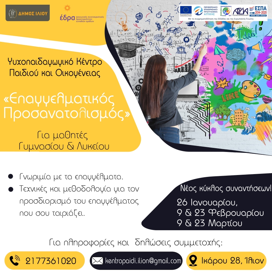 Οι συναντήσεις πραγματοποιούνται στο κτίριο του Ψυχοπαιδαγωγικού Κέντρου Παιδιού και Οικογένειας, Ικάρου 28 στο Ίλιον και ώρα 17:30-19:30.