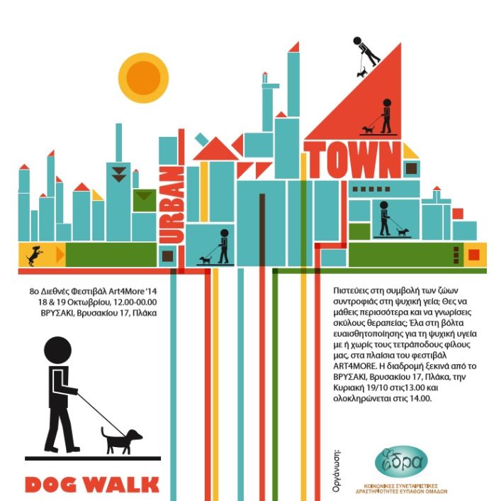 Έλα στη βόλτα ευαισθητοποίησης για τη ψυχική υγεία με ή χωρίς τους τετράποδους φίλους μας, στα πλαίσια του φεστιβάλ ART4MORE. Η διαδρομή ξεκινά από το ΒΡΥΣΑΚΙ, Βρυσακίου 17, Πλάκα, την Κυριακή 19/10 στις 13.00 και ολοκληρώνεται στις 14.00 με οδηγό τη Λίλιαν Τυροπούλου.