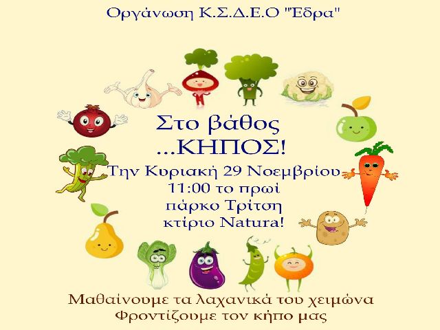 Κυριακή 29 Νοεμβρίου 11:00 το πρωί στο πάρκο Τρίτση