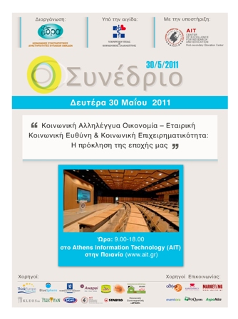 Το Συνέδριο, υπό τη διοργάνωση της Κ.Σ.Δ.Ε.Ο. «ΕΔΡΑ» και την υποστήριξη του Athens Institute of Technology,είχε ως στόχο την επίτευξη διαλόγου μεταξύ των Κοινωνικών εταίρων, των δημοσίων φορέων και της κοινωνίας των πολιτών καθώς και την ανταλλαγή καλών πρακτικών. Ζητούμενο αποτέλεσεί η ανάπτυξη του καινούργιου τομέα της Οικονομίας, της «Κοινωνικής Οικονομίας». Με το προσχέδιο νόμου για τον «Εθελοντισμό και τις ΜΚΟ», με το σχέδιο νόμου «Για την θεσμοθέτηση της Κοινωνικής Οικονομίας και της Κοινωνικής Επιχειρηματικότητας» και με το Σχέδιο Νόμου «Θεσμικό πλαίσιο για τους αγροτικούς συνεταιρισμούς, τις συλλογικές οργανώσεις και την επιχειρηματικότητα του αγροτικού κόσμου- Οργάνωση της εποπτείας του Κράτους» έχει αρχίσει ήδη ένας ενεργός διάλογος δημόσιας διαβούλευσης στην χώρα μας, στις σχέσεις κράτους και οργανώσεων της κοινωνίας των πολιτών.