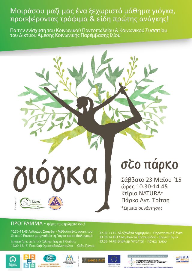 Μοιραστείτε μαζί μας ένα ξεχωριστό μάθημα γιόγκα, προσφέροντας αντί «εισιτηρίου» τρόφιμα & είδη πρώτης ανάγκης για την ενίσχυση του Κοινωνικού Παντοπωλείου & Κοινωνικού Συσσιτίου των Κοινωνικών Δομών Άμεσης Αντιμετώπισης της Φτώχειας στο Δήμο Ιλίου.