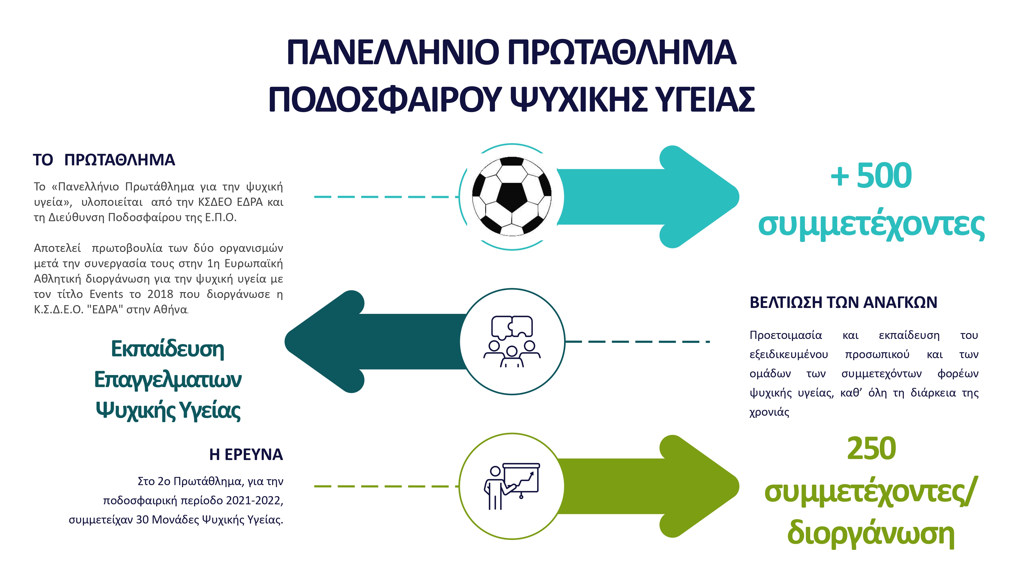 Με αφορμή το 3ο Πανελλήνιο Πρωτάθλημα για την Ψυχική Υγεία που θα διεξαχθεί από τις 13 έως τις 14 Ιουνίου στην Αθήνα για τους Φορείς Ψυχικής Υγείας από όλη την Ελλάδα με συνεργάτη και αρωγό την Πανελλήνια Ποδοσφαιρική Ομοσπονδία (ΕΠΟ), συντάχθηκε έρευνα για τα οφέλη που έχει το ποδόσφαιρό στην ψυχική υγεία των συμμετεχόντων – ουσών.