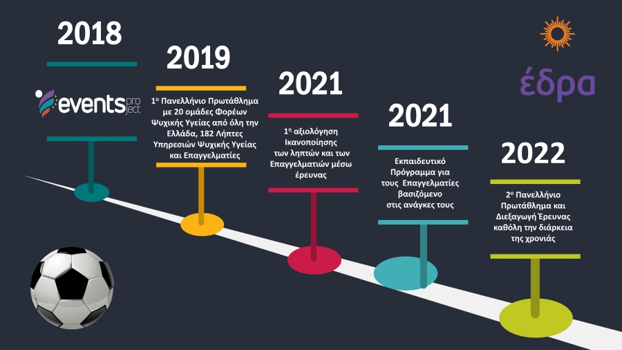 - Η έρευνα διεξήχθη σε Επαγγελματίες Ψυχικής Υγείας και Λήπτες Υπηρεσιών Ψυχικής Υγείας που συμμετείχαν στα 3 Πρωταθλήματα Ποδοσφαίρου