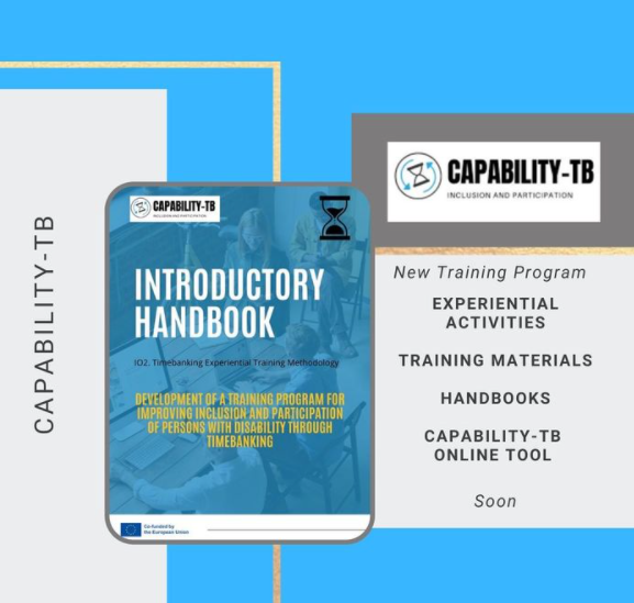 Το ευρωπαϊκό έργο Capability-TB (“Development of a Training Program for improving Inclusion and Participation of Persons with Disability through Timebanking”) υλοποιείται με την υποστήριξη του προγράμματος Erasmus+ της Ευρωπαϊκής Ένωσης κι έχει διάρκεια 24 μήνες (Νοέμβριος 2020 – Οκτώβριος 2022). Στόχος είναι η δημιουργία ενός εκπαιδευτικού προγράμματος που θα συμβάλει στην καλύτερη κοινωνική ενσωμάτωση και συμμετοχή των Ατόμων με Αναπηρία, μέσω του TimeBanking.