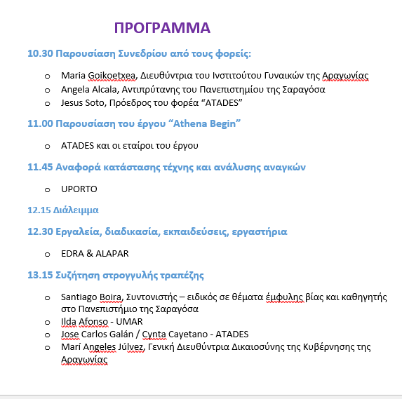 Το Ευρωπαϊκό Έργο ATHENA Begin θα παρουσιάσει την Παρασκευή 21 Ιανουαρίου στις 10:30 π.μ., τα συμπεράσματα της κοινής εργασίας των πέντε φορέων από Ισπανία, Ελλάδα και Πορτογαλία, που συμμετείχαν στο έργο.